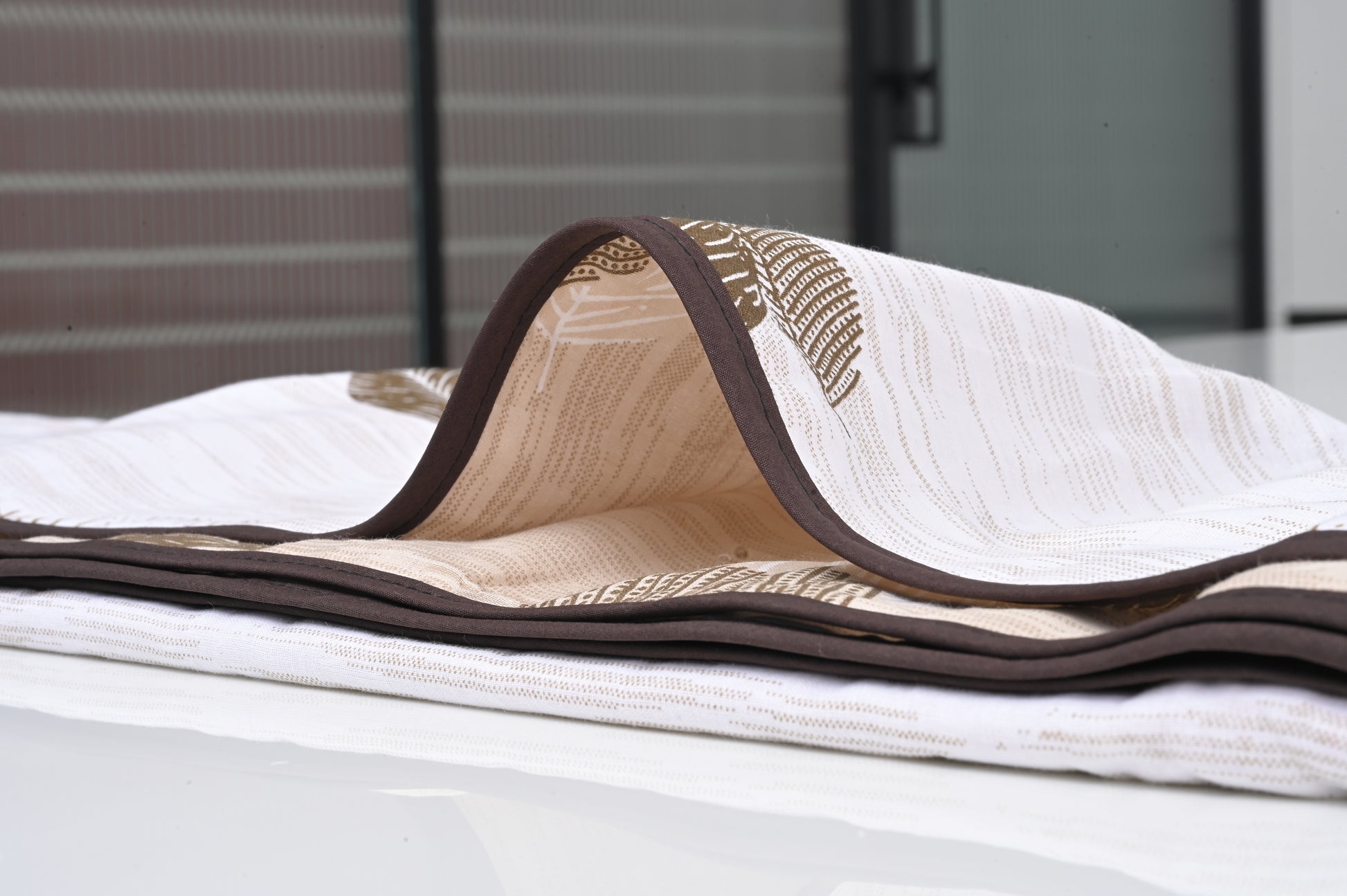 Single & Double Bed 100% Cotton Cambric AC Dohar with Leaf Pattern (Brown)