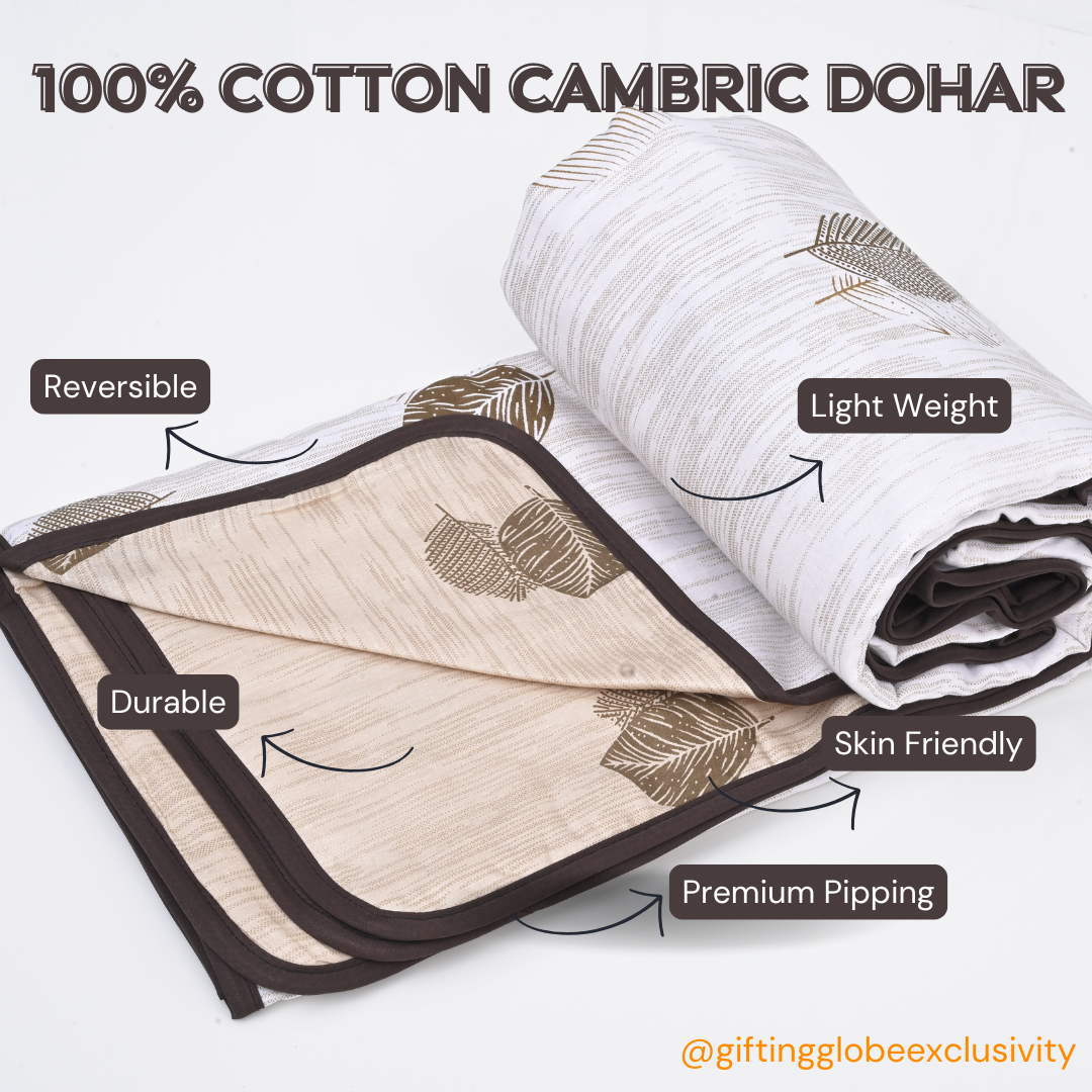 Luxurious Comfort: The Dohar is crafted from 100% cotton cambric for unparalleled softness and breathability, ensuring a cosy sleep experience.