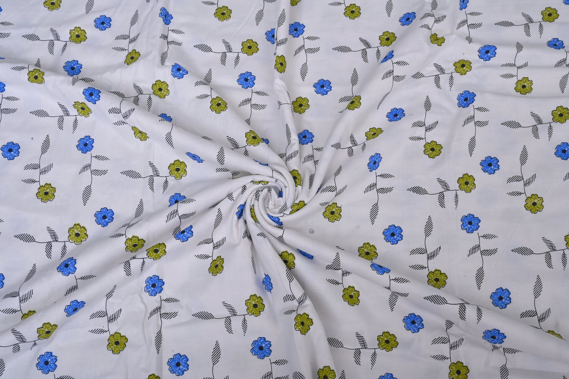 Single & Double Bed 100% 60s Cotton Cambric AC Dohar White Edition (Green & Blue Flower Motifs)