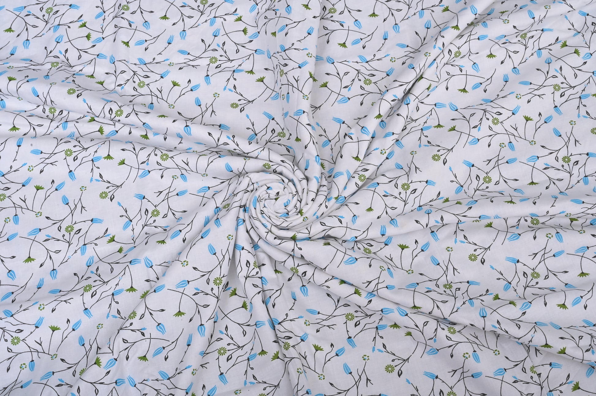 Single & Double Bed 100% 60s Cotton Cambric AC Dohar White Edition (Small Green & Blue Flowers)