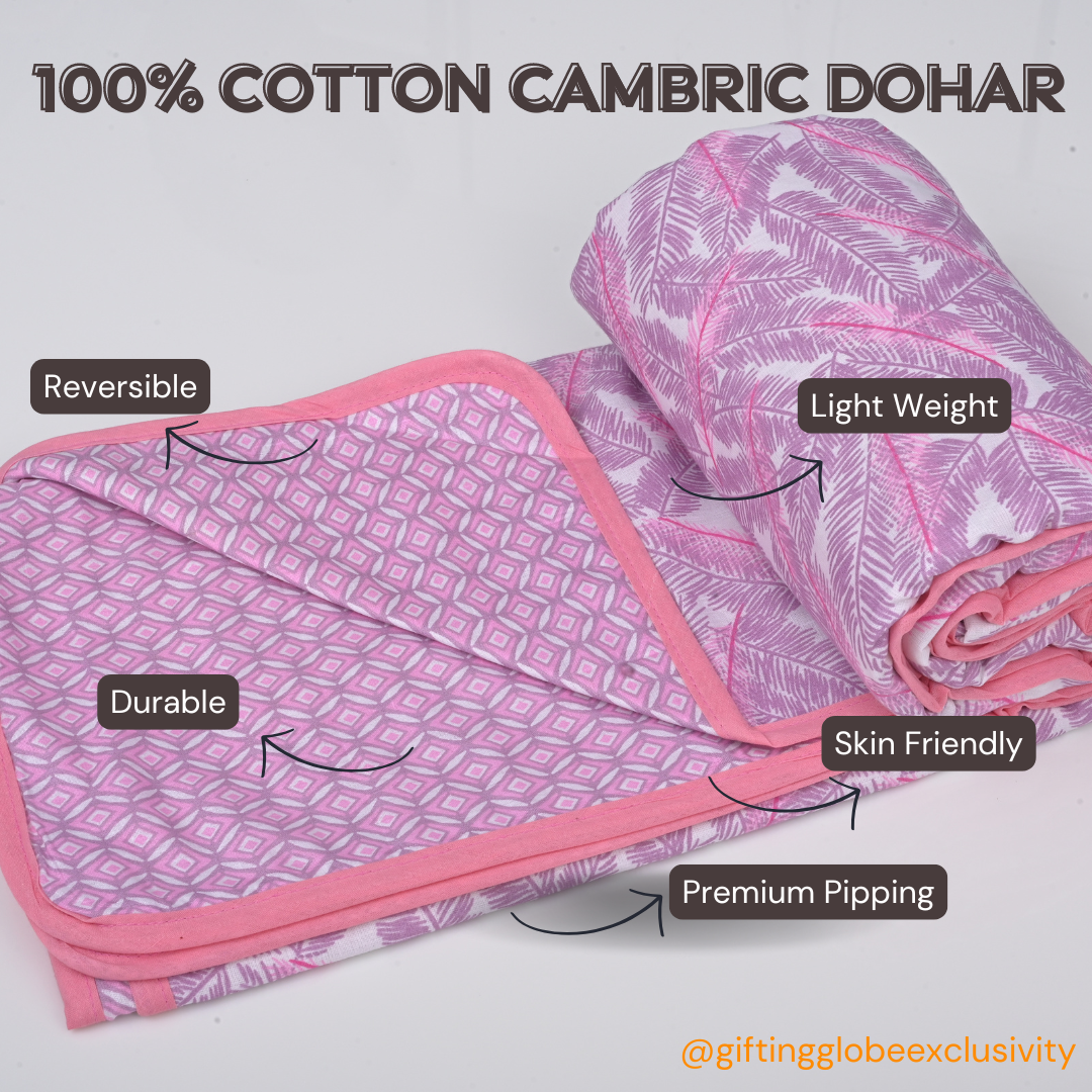 Single & Double Bed 100% Cotton Cambric AC Dohar with Feather Pattern (Pink)